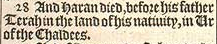 28 And Haran died, before his father Terah in the land of his natiuity, in Ur of the Chaldees.