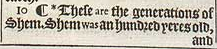 10 ¶ *These are the generations of Shem. Shem was an hundred yeres old, and begate Arphaxad two yeeres after the Flood.