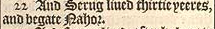 22 And Serug liued thirtie yeeres, and begate Nahor.