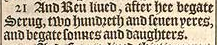 21 And Reu liued, after hee begate Serug, two hundreth and seuen yeres, and begate sonnes and daughters.