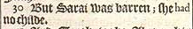 30 Aber Sarai wurde geboren und hatte kein Kind.