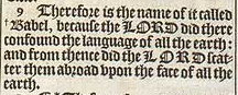 9 Therefore is the name of it called +Babel, because the LORD did there confound the language of all the earth: and from thence did the LORD scatter them abroad vpon the face of all the earth.[+ That is, Confusion. ]
