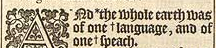 1 And *the whole earth was of one + language, and of one + speach. [ *Wis.10.5. , + Hebr. lippe. , +Heb. words.]