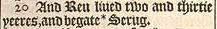 20 And Reu liued two and thirtie yeeres, and begate* Serug. [*Luc.5.35 Saruch. ]