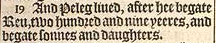 19 And Peleg liued, after hee begate Reu, two hundred and nine yeeres, and begate sonnes and daughters.