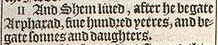 11And Shem liued, after he begate Arphaxad, fiue hundred yeeres, and begate sonnes and daughters.