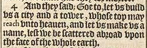 4 And they said; Goe to, let vs build vs a city and a tower, whose top may reach vnto heauen, and let vs make vs a name, lest we be scattered abroad vpon the face of the whole earth.