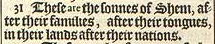 1 Now these are the generations of the sonnes of Noah; Shem, Ham, and Iaphet: and vnto them were sonnes borne after the Flood.