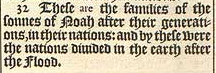 32 These are the families of the sonnes of Noah after their generations, in their nations: and by these were the nations diuided in the earth after the Flood.