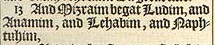 13 And Mizraim begat Ludim, and Anamim, and Lehabim, and Naphtuhim,