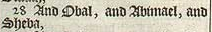 28 And Obal, and Abimael, and Sheba,