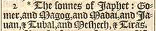 2 *The sonnes of Iaphet: Gomer, and Magog, and Madai, and Iauan, & Tubal, and Meshech, & Tiras. [*1.Chron. 1.5.]