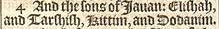 4 Und die Söhne von Javan: Elishah und Tarshish, Kittim und Dodanim.