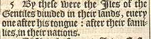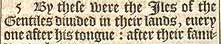 5 By these were the Iles of the Gentiles diuided in their lands, euery one after his tongue: after their families, in their nations.