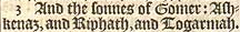 3 And the sonnes of Gomer: Ashkenaz, and Riphath, and Togarmah.