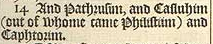 14 And Pathrusim, and Casluhim (out of whome came Philistiim) and Caphtorim.