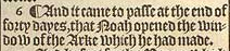 6 ¶And it came to passe at the end of forty dayes, that Noah opened the window of the Arke which he had made.