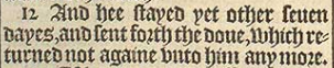 12 And hee stayed yet other seuen dayes, and sent forth the doue, which returned not againe vnto him any more.