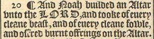 20 ¶And Noah builded an Altar vnto the LORD, and tooke of euery cleane beast, and of euery cleane fowle, and offred burnt offrings on the Altar.