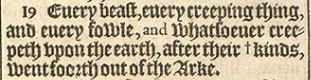 19 Euery beast, euery creeping thing, and euery fowle, and whatsoeuer creepeth vpon the earth, after their +kinds, went foorth out of the Arke. [ +Hebr. families.]