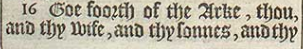 16 Goe foorth of the Arke, thou, and thy wife, and thy sonnes, and thy sonnes wiues with thee: