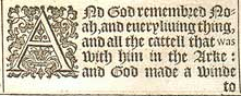 1 And God remembred Noah, and euery liuing thing, and all the cattell that was with him in the Arke: and God made a winde to passe ouer the earth, and the waters asswaged.