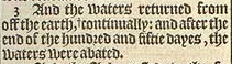 3 And the waters returned from off the earth, +continually: and after the end of the hundred and fiftie dayes, the waters were abated. [+Hebr. in going and returning. ]