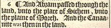 6 ¶ And Abram passed through the land, vnto the place of Sichem, vnto the plaine of Moreh. And the Canaanite was then in the land.