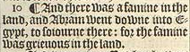 10 ¶ And there was a famine in the land, and Abram went downe into Egypt, to soiourne there: for the famine was grieuous in the land.
