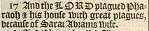 17 And the LORD plagued Pharaoh & his house with great plagues, because of Sarai Abrams wife.