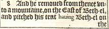 8 And he remoued from thence vnto a mountaine, on the East of Beth-el, and pitched his tent hauing Beth-el on the West, and Hai on the East: and there hee builded an altar vnto the LORD, and called vpon the Name of the LORD.