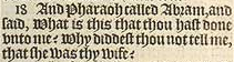 18 And Pharaoh called Abram, and said, What is this that thou hast done vnto me? Why diddest thou not tell me, that she was thy wife?