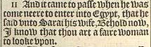 11 And it came to passe when he was come neere to enter into Egypt, that he said vnto Sarai his wife, Behold now, I know that thou art a faire woman to looke vpon.