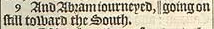 9 And Abram iourneyed, || going on still toward the South. [ || Heb. in going and iourneying. ]