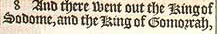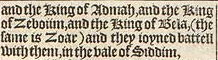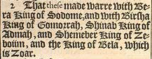 8 And there went out the King of Sodome, and the King of Gomorrah, and the King of Admah, and the King of Zeboiim, and the King of Bela, (the same is Zoar) and they ioyned battell with them, in the vale of Siddim,