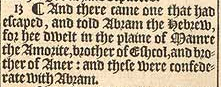 13 ¶ Und da kam einer, der entkommen war, und lehrte Abram Hebräisch, denn er wohnte in der Ebene von Mamre dem Amoriten, Bruder von Eschol und Bruder von Aner: Und diese waren mit Abram verbündet.
