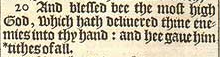 20 And blessed bee the most high God, which hath deliuered thine enemies into thy hand: and hee gaue him *tithes of all. [*Heb.7.4.]