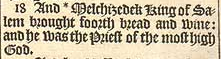 18 And *Melchizedek King of Salem brought foorth bread and wine: and he was the Priest of the most high God. [ *Heb.7. 1.]