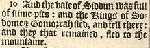 10 And the vale of Siddim was full of slime-pits: and the Kings of Sodome & Gomorrah fled, and fell there: and they that remained, fled to the mountaine.