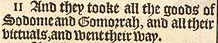 11 And they tooke all the goods of Sodome and Gomorrah, and all their victuals, and went their way.
