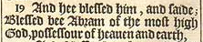 19 And hee blessed him, and saide; Blessed bee Abram of the most high God, possessour of heauen and earth,