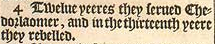 4 Twelue yeeres they serued Chedorlaomer, and in the thirteenth yeere they rebelled.