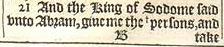 21 And the King of Sodome said vnto Abram, giue me the + persons, and take the goods to thy selfe. [ +Hebr. soules.]