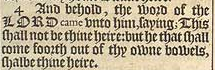 4 And behold, the word of the LORD came vnto him, saying; This shall not be thine heire: but he that shall come foorth out of thy owne bowels, shalbe thine heire.