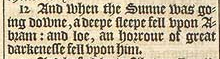 12 And when the Sunne was going downe, a deepe sleepe fell vpon Abram: and loe, an horrour of great darkenesse fell vpon him.