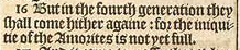 16 But in the fourth generation they shall come hither againe: for the iniquitie of the Amorites is not yet full.