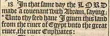 18 In that same day the LORD made a couenant with Abram, saying; * Unto thy seed haue I giuen this land from the riuer of Egypt vnto the great riuer, the riuer Euphrates: [ *Chap.12. 7. and 13. 15. & 26.4. deut.34.4. ]
