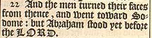22 And the men turned their faces from thence, and went toward Sodome: but Abraham stood yet before the LORD.