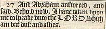 27 Und Abraham antwortete und sagte “Siehe nun, ich habe es es auf mich genommen, mit dem HERRN zu sprechen, für den ich nur Staub und Asche bin.