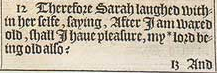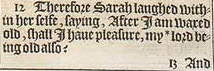 12 Therefore Sarah laughed within her selfe, saying, After I am waxed old, shall I haue pleasure, my *lord being old also? [ *1.Pet.3. 6. ]